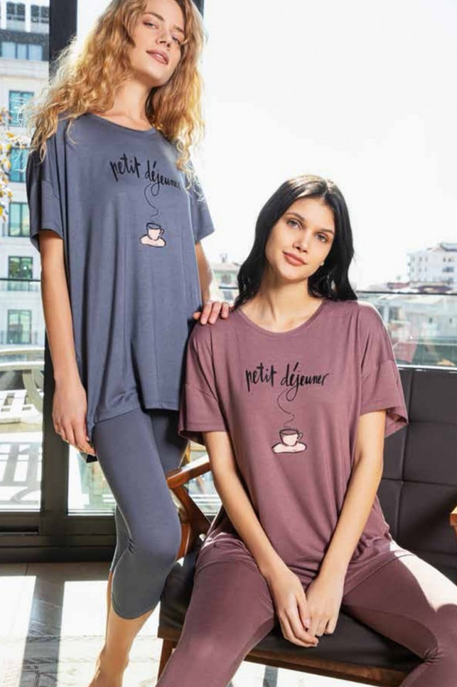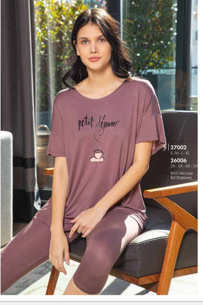 بيجامه صيفي قصيرة الى منتصف الساق صناعة تركية من قماش الفيسكوز الناعم باللون الرماني البرمودا البلوزة بقصة واسعة
