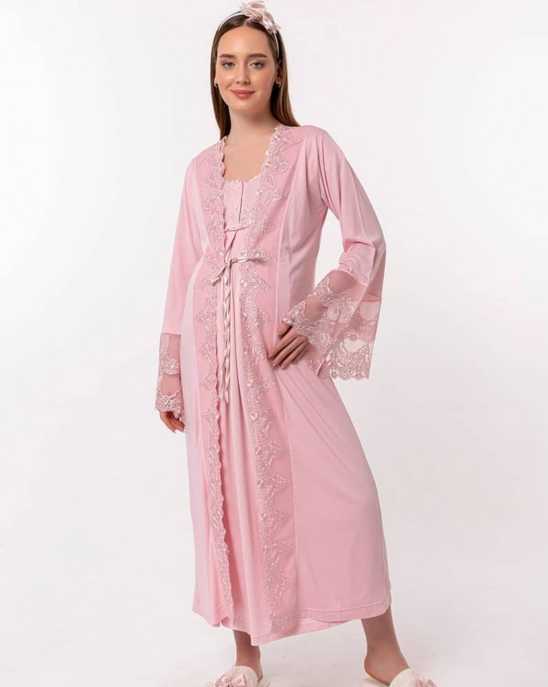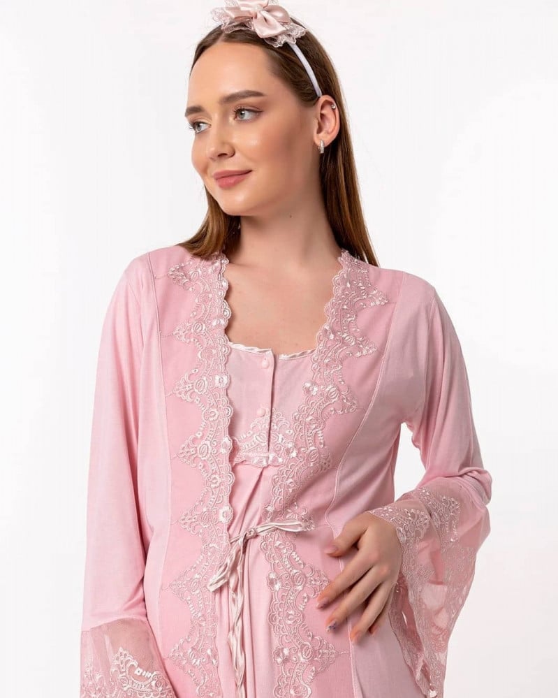 - عدد القطع: طقم قطعتين قميص وروب حوامل ورضاعة